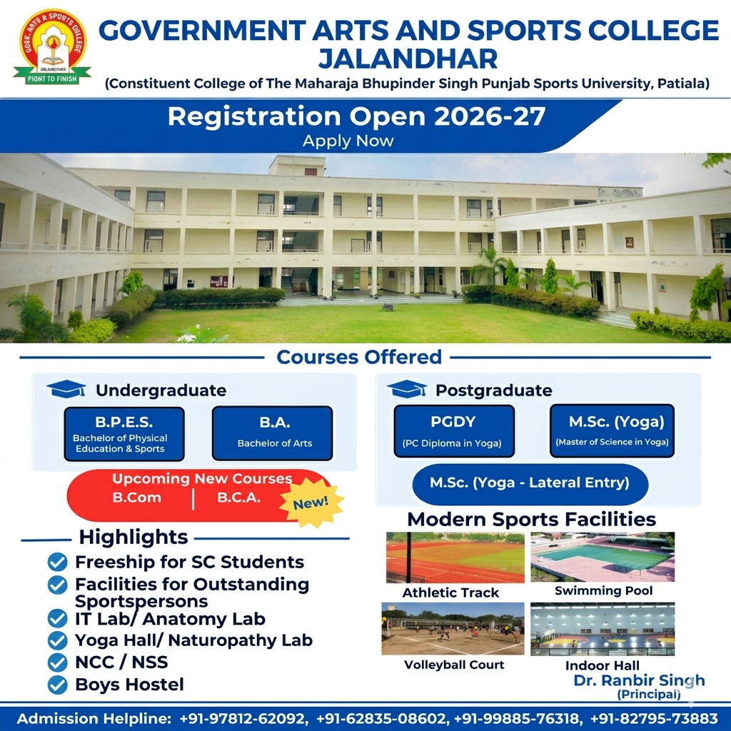 The Govt. Arts and Sports College, Jalandhar which was earlier affiliated of Guru Nanak Dev University, Amritsar is now a constituent college of The Maharaja Bhupinder Singh Punjab Sports University at Patiala.